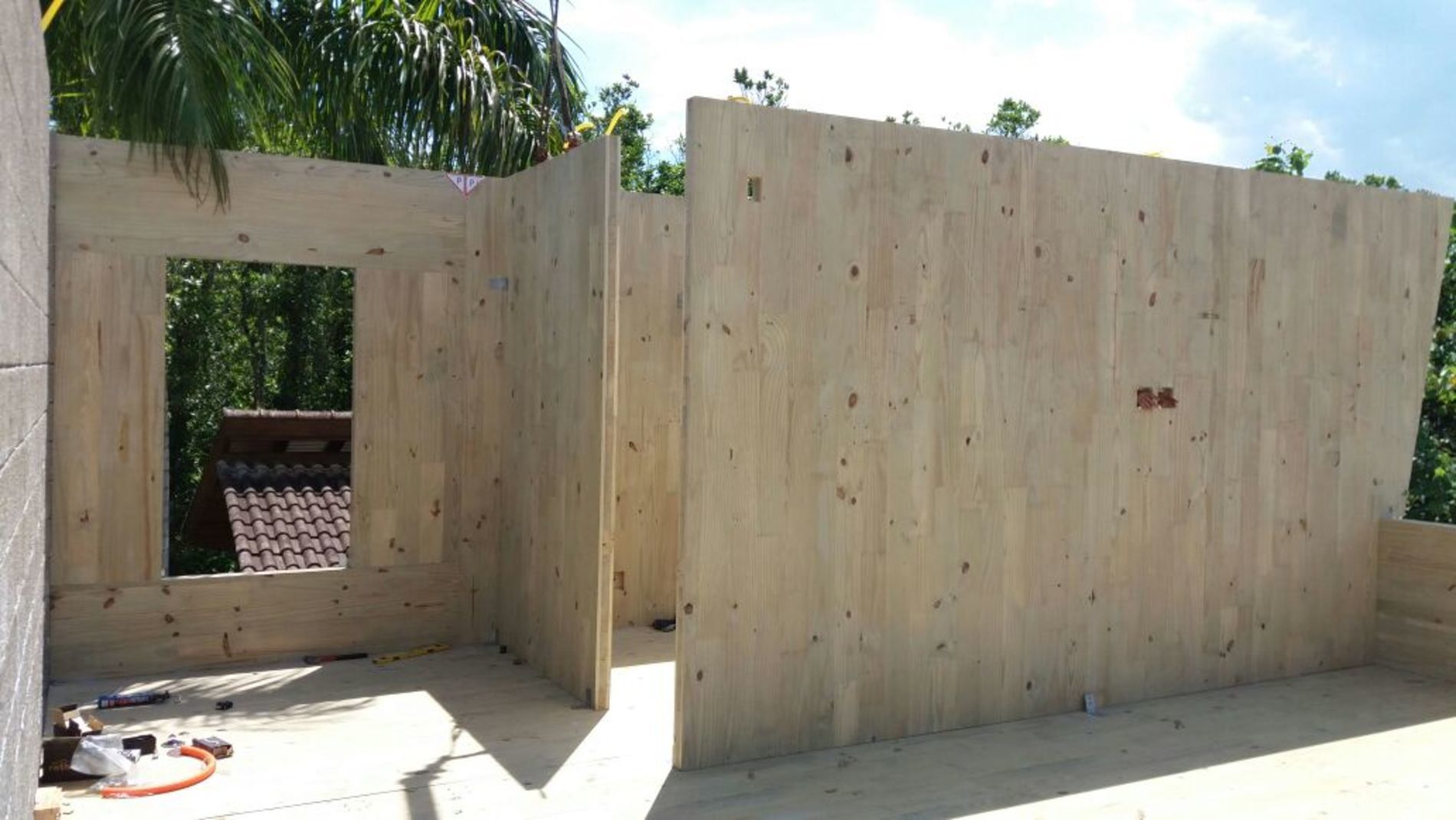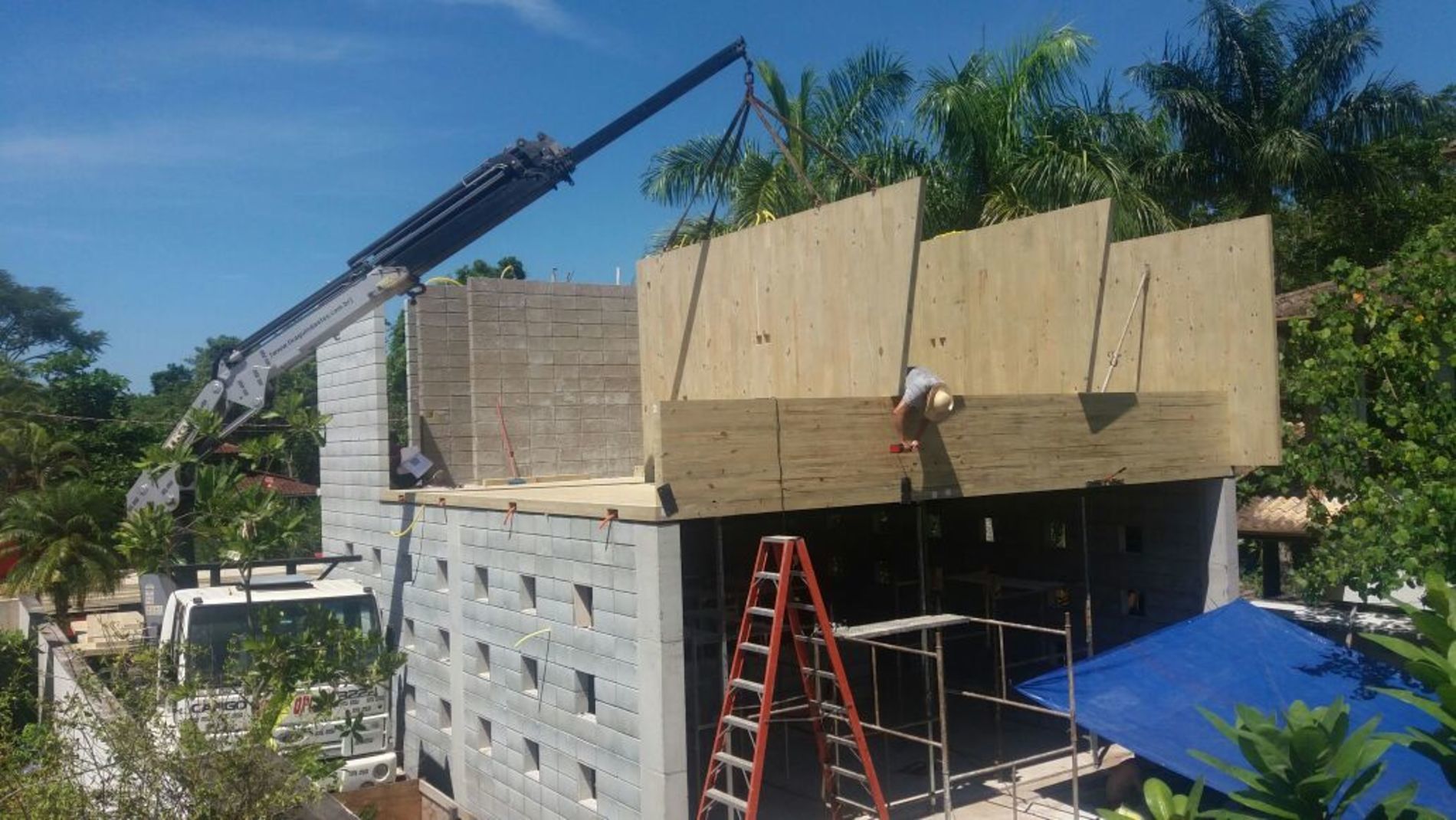Estrutura: estrutura composta por paredes estruturais, lajes de piso e cobertura de CLT (apenas segundo pavimento);