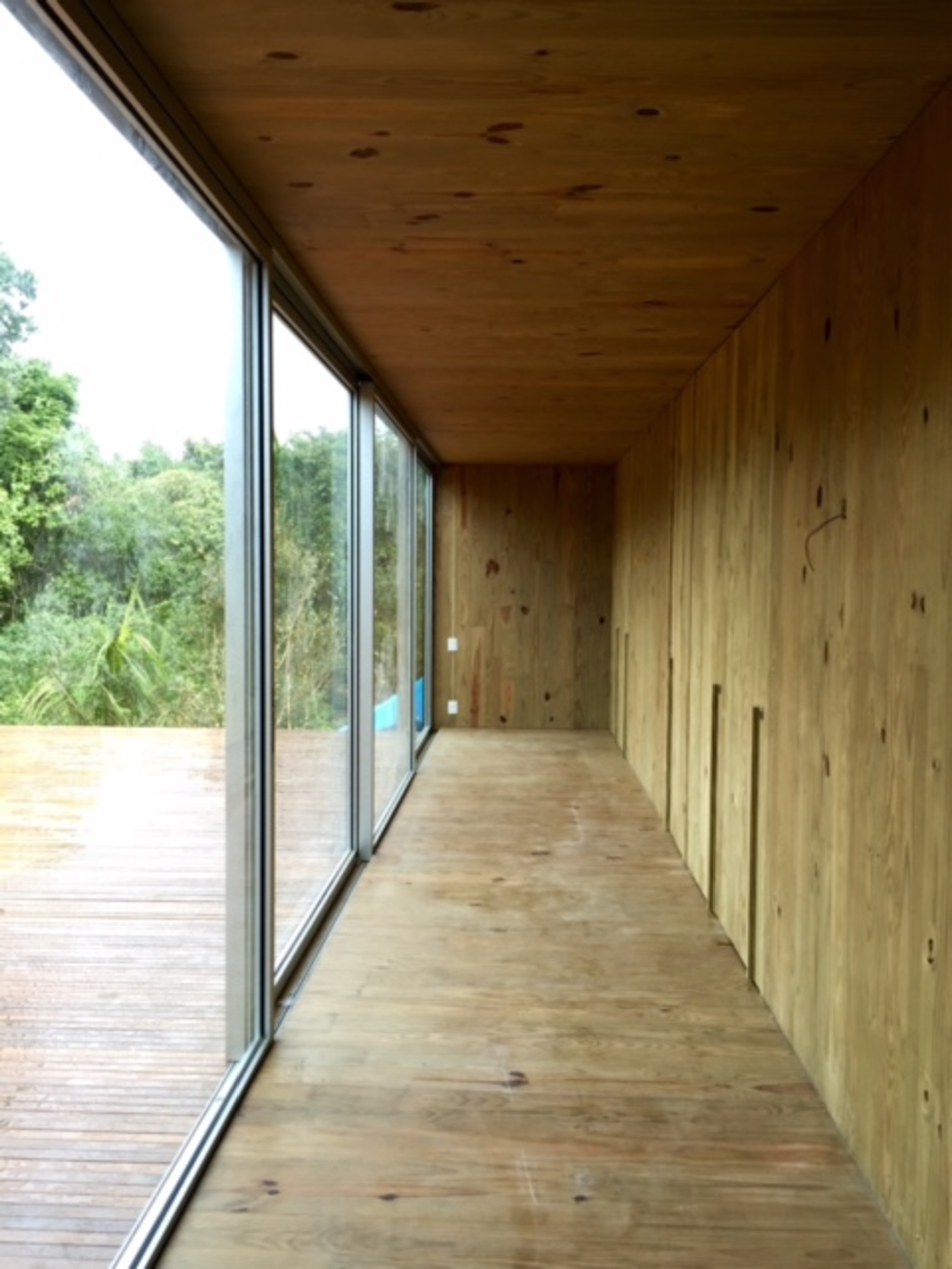 Estrutura: paredes, lajes de piso e cobertura de CLT, no segundo pavimento, e módulos de CLT soltos para configurar os ambientes fechados do pavimento térreo.;