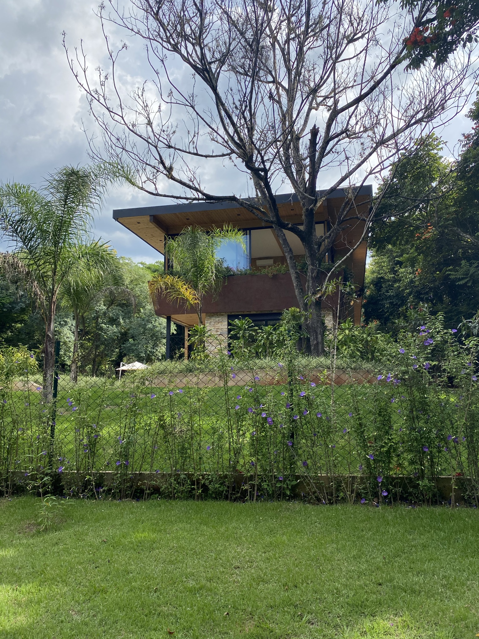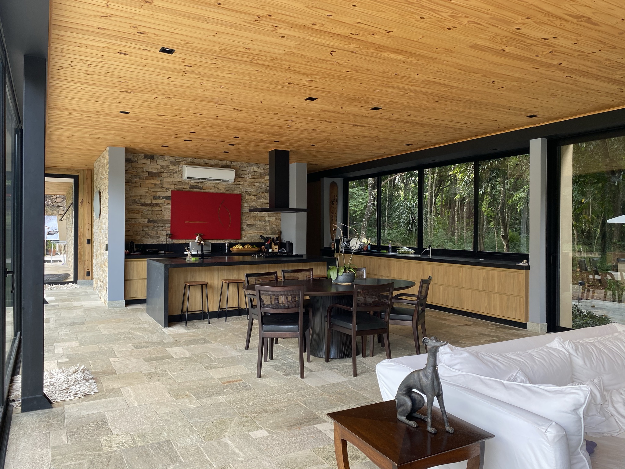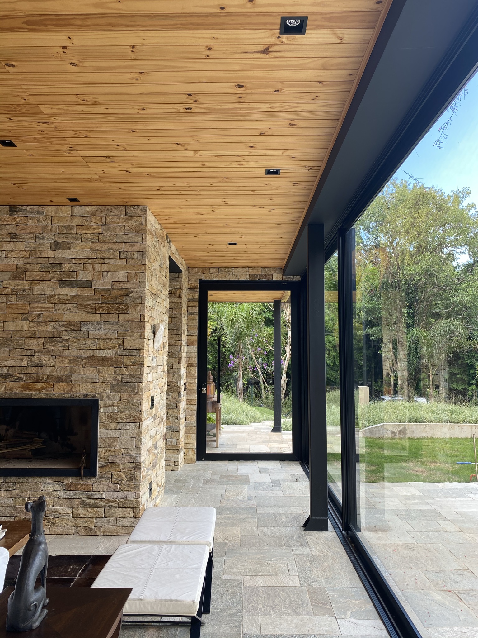 Estrutura: estrutura híbrida composta por pilares e vigas metálicos no pavimento térreo, com vedações de wood-frame. No segundo pavimento, paredes estruturais e lajes de piso de CLT, cobertura de MLC e OSB;