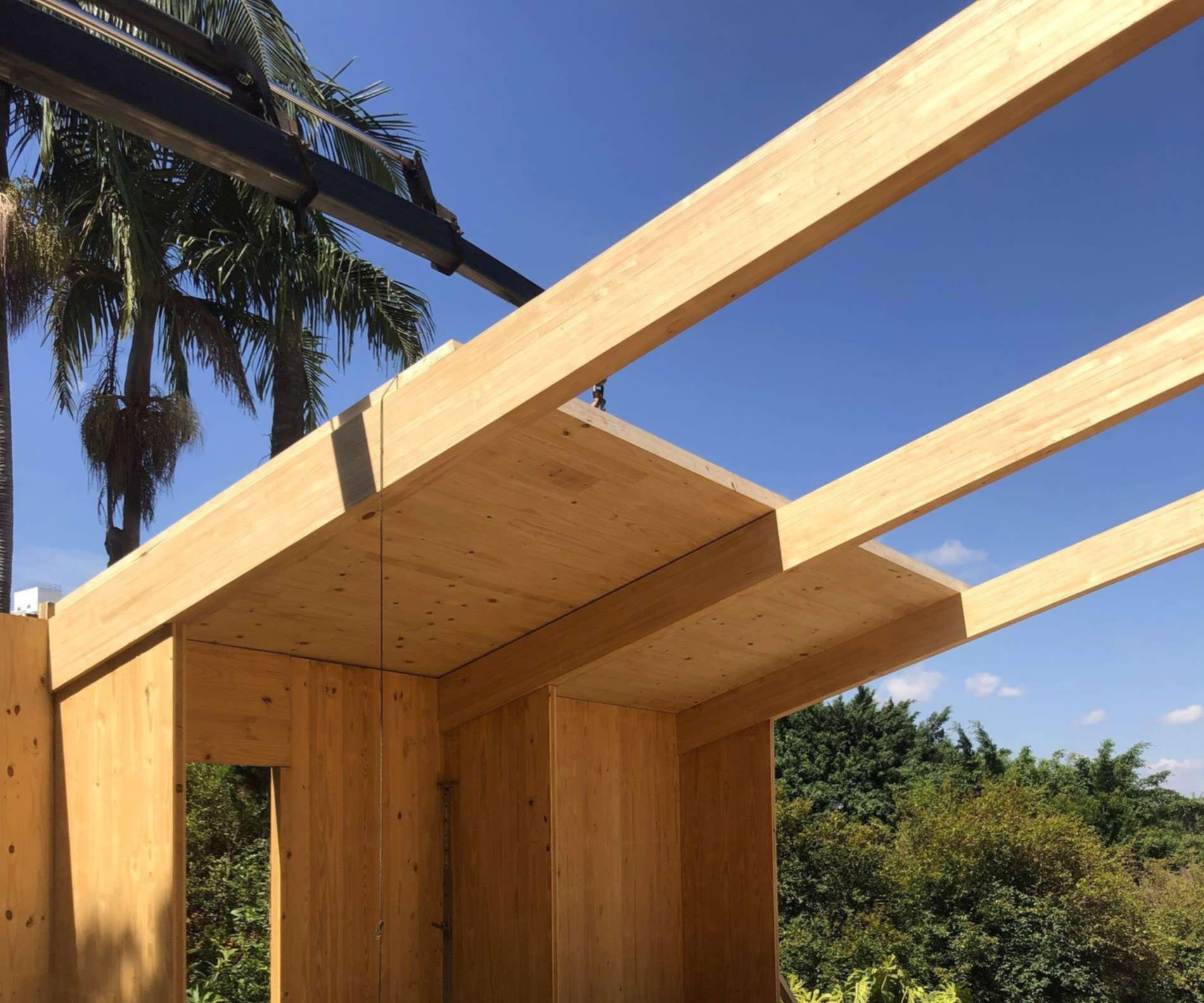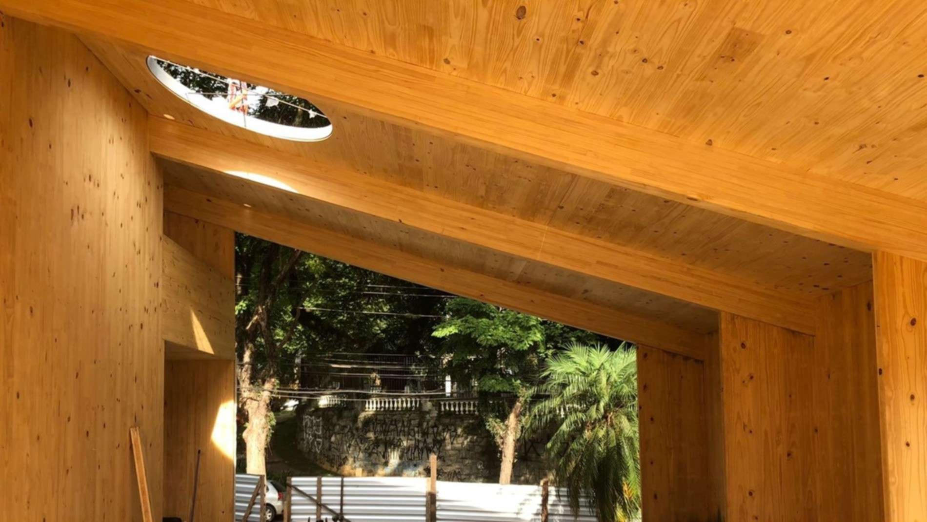 cidade de São Paulo (SP), em dezembro de 2022. Os painéis de CLT de pinus (paredes, lajes de piso e cobertura)