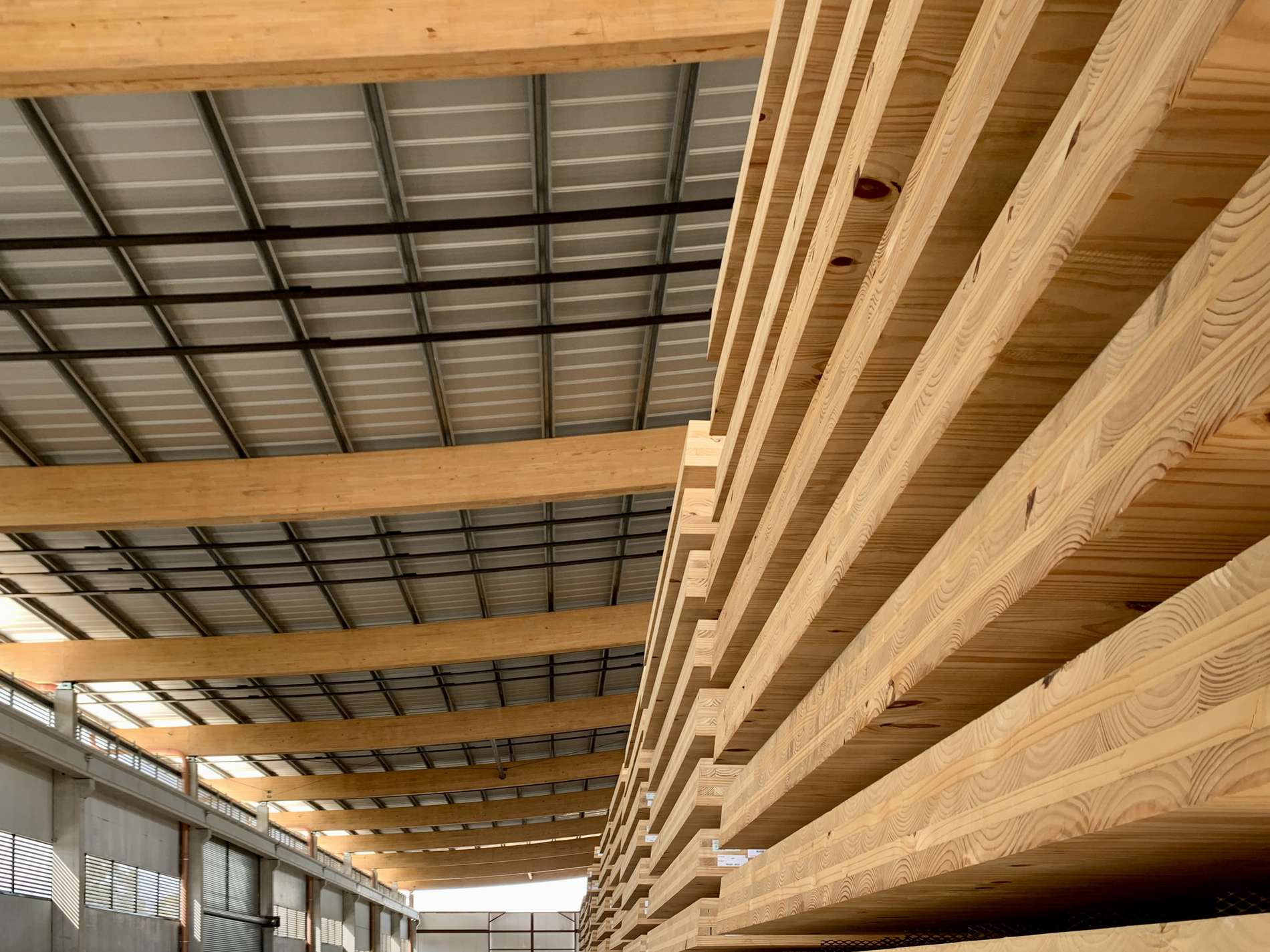 Estrutura: estrutura de cobertura composta por vigas de MLC curvas.;